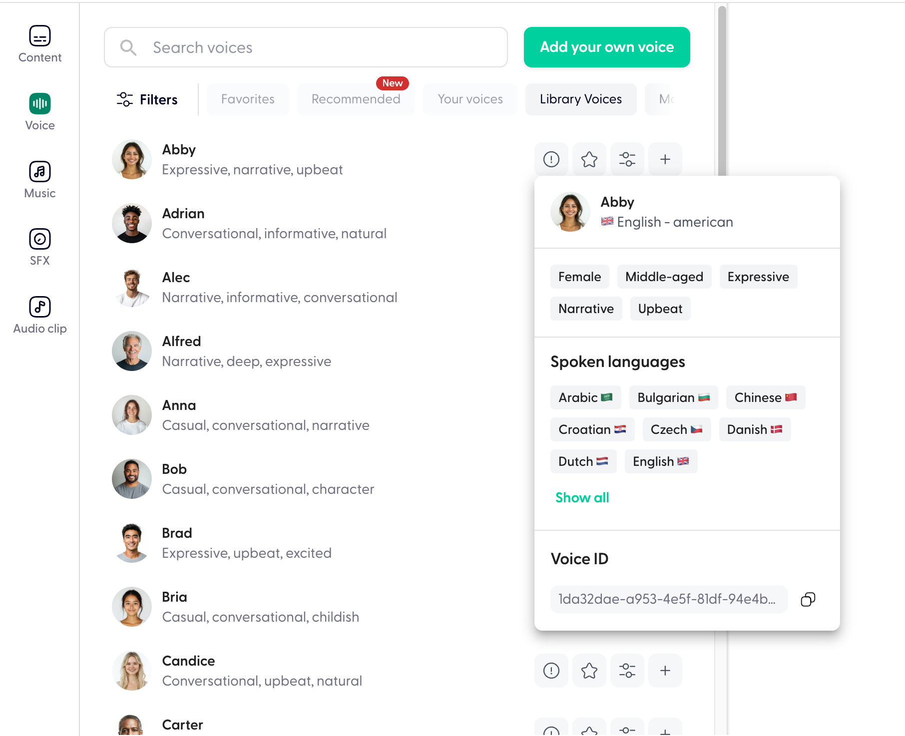 looks slightly different. You will provide script segemnts, where each segment contains the text and the voice id for the